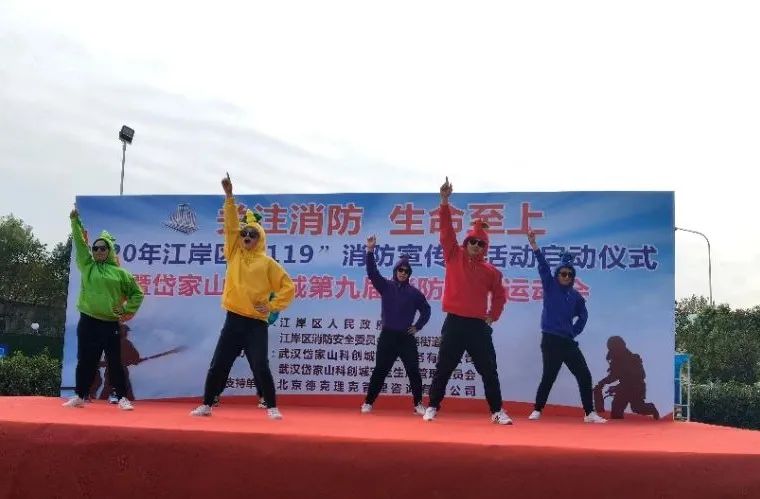 隨后,江岸區(qū)消防救援大隊(duì)帶來開場大合唱《生命至上》、《沒有共產(chǎn)黨就沒有新中國》、岱家山科創(chuàng)城消安員們帶來消防舞蹈《一塊做消防》,歌頌著大家對生命、對祖國以及對消防事業(yè)的熱愛。江岸區(qū)應(yīng)急管理局局長陳超宣讀了《江岸區(qū)消防安全委員會關(guān)于表彰百名優(yōu)秀消防志愿者的決定》,江岸區(qū)人民政府常務(wù)副區(qū)長祁琳致辭并宣布2020年江岸區(qū)119消防宣傳月活動啟動儀式暨岱家山科創(chuàng)城第九屆消防趣味運(yùn)動會比賽開始。
