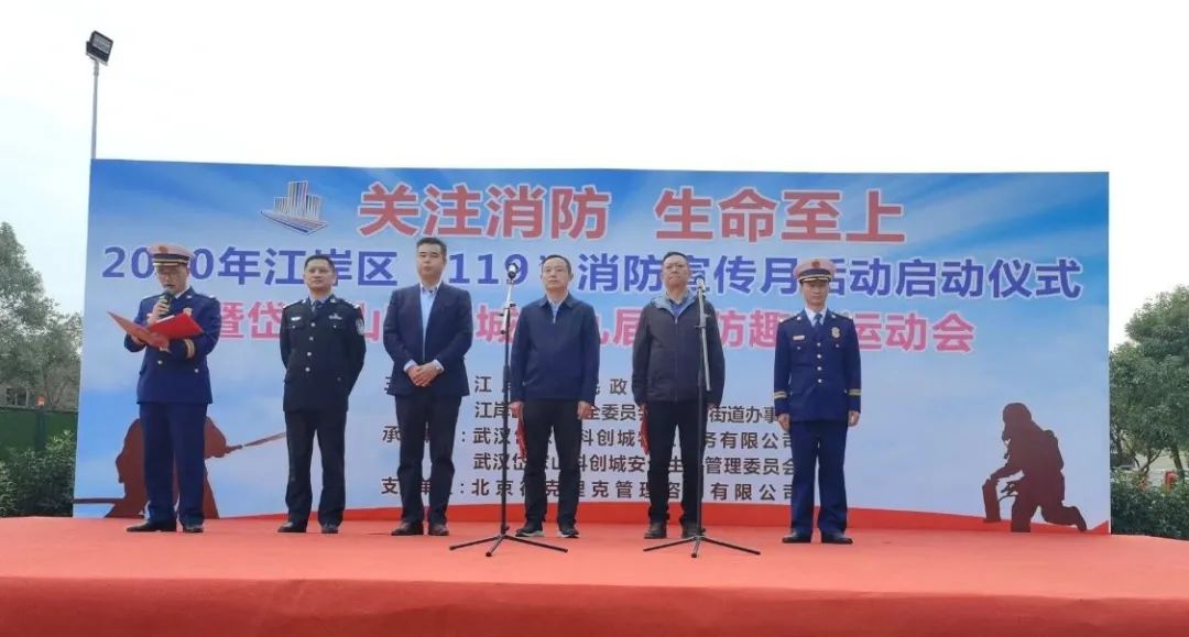 11月6日下午,2020年江岸區(qū)“119”消防宣傳月活動啟動儀式暨岱家山科創(chuàng)城第九屆消防趣味運(yùn)動會在岱家山科創(chuàng)城足球場隆重舉行。江岸區(qū)各街道辦事處、百步亭社區(qū)、各派出所、街道微型消防站代表隊(duì)、武漢格晟工業(yè)技術(shù)有限公司企業(yè)有幸受邀參加,與園區(qū)內(nèi)企業(yè)代表共500多人參加了本次活動。
